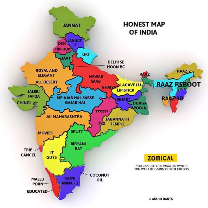 Shikha Chaudhary on Twitter: "Honest Map of #India ! Delhi se hun ** 😂😂 ...