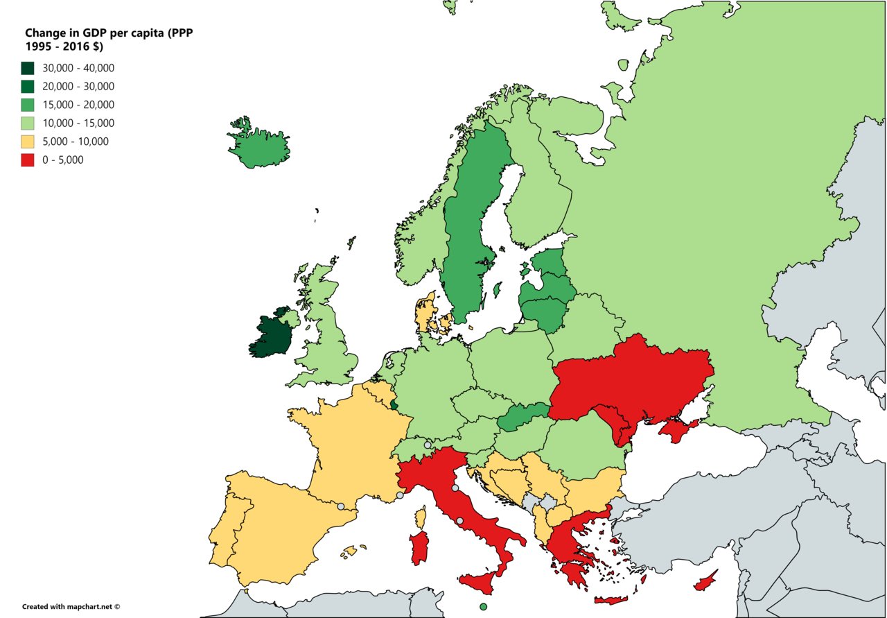 OnlMaps on Twitter: "Change in GDP per capita, Europe, 1995 - 2016 ...