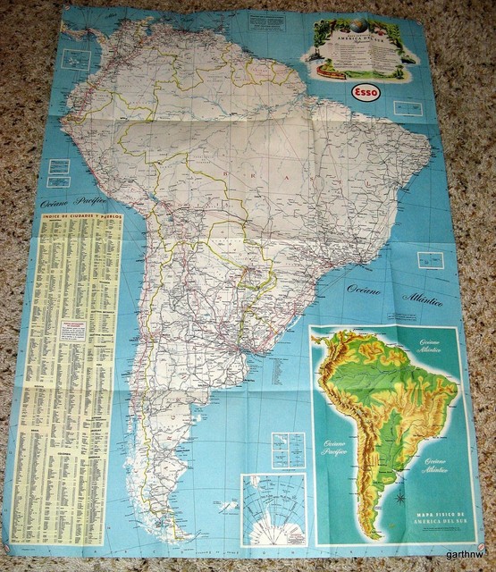 ESSO 1955 PICTORIAL & ROAD MAP OF SOUTH AMERICA in SPANISH * STANDARD ...
