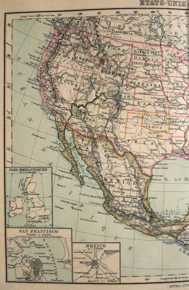 Original 1895 Map of the United States and Mexico by Justus | Etsy